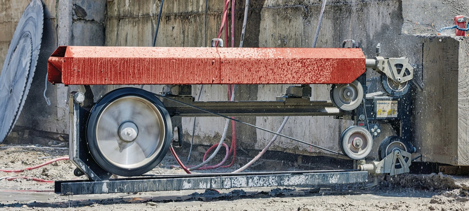 Quick adaptation of the DST 20-CA wall saw from cutting with circular blades to diamond wires