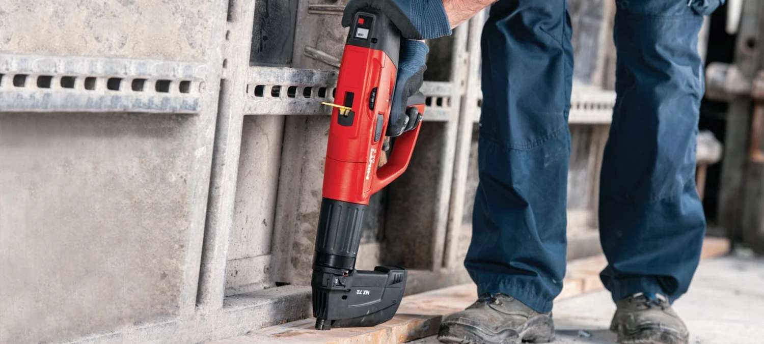 Collated fasteners for the temporary fastening of wood to concrete