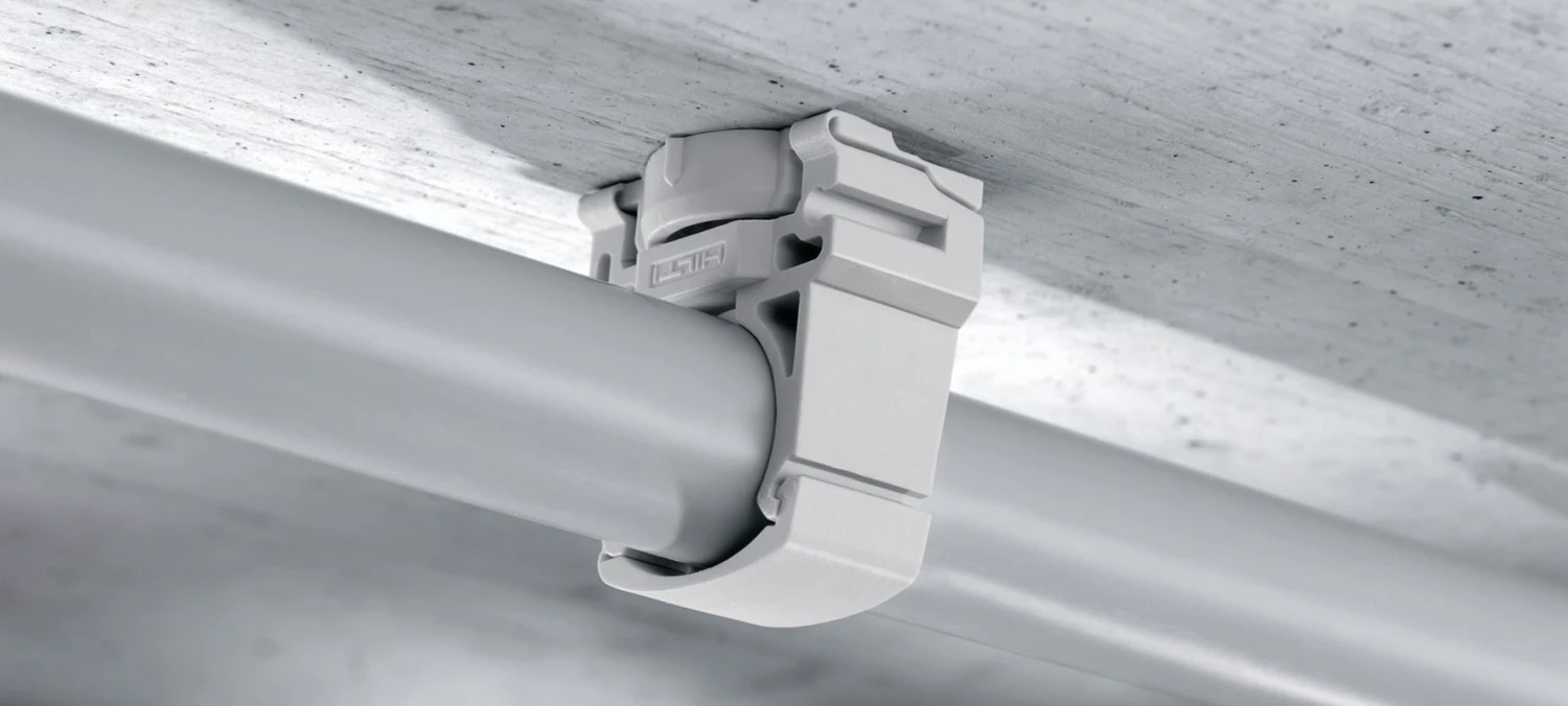 Plastic cable/conduit clamp with clip-in design and snap-lock for use with collated nails