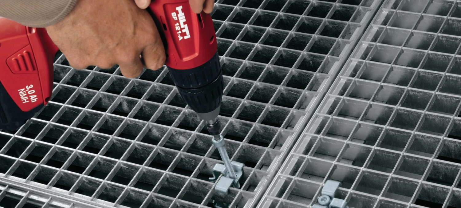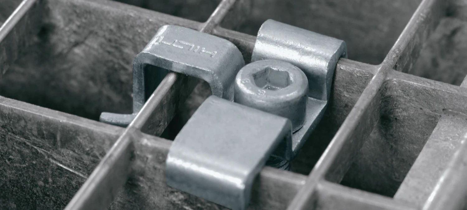 Fastening grating to steel structures in mildly corrosive environments